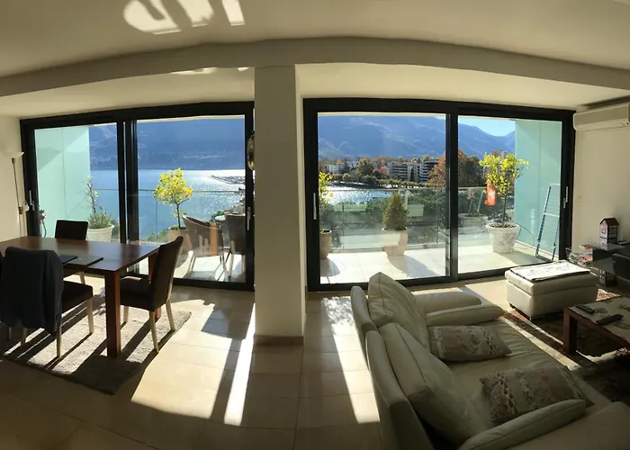 A 92 m^2-es Traumwohnung Seesicht, Balkon Locarno apartman gyönyörű elhelyezkedést élvez Locarno közvetlen szívében, autóval nagyjából 5 percre egy olyan népszerű kegyhelytől, mint a San Quirico. Az autóval érkezők számára a 2 hálószobás apartman ingyenes privát parkolót biztosít a helyszínen.
